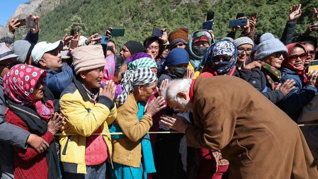 प्रधानमंत्री श्री नरेंद्र मोदी ने आज पिथौरागढ़ के गुंजी गांव में स्थानीय लोगों से मिलकर उनसे बातचीत की। इस दौरान गुंजी गांव में दूर-दराज से पहुंचे लोग प्रधानमंत्री को अपने बीच पाकर उत्साहित दिखे। इस दौरान प्रधानमंत्री ने च्यूबाला पहनी रंगस्या (महिलाओं) से आशीर्वाद भी लिया। इस अवसर पर मुख्यमंत्री श्री पुष्कर सिंह धामी ने प्रधानमंत्री को अंग वस्त्र व प्रतीक चिन्ह के रूप में ओम पर्वत की फोटो भेंट की। वही “रं” समाज द्वारा मानसरोवर का पवित्र जल भरा कलश भेंट किया गया। प्रधानमंत्री श्री मोदी ने गुंजी में सेना के जवानों के साथ बातचीत कर उनका हौसला भी बढ़ाया। उन्होंने रं समाज कल्याण समिति के लोगों से भी भेंटवार्ता की। प्रधानमंत्री श्री मोदी ने इस अवसर पर स्वयं नगाड़ा भी बजाया। प्रधानमंत्री ने भारत-तिब्बत व्यापार के प्रमुख केन्द्र गुंजी गांव में स्थानीय कला और उत्पादों पर आधारित प्रदर्शनी का अवलोकन भी किया। इस अवसर पर उन्होंने आदि कैलाश, पार्वती सरोवर, कुटी गांव, रांगकॉग गांव, नाबी, गुंजी, ओम पर्वत की फोटो गैलरी का भी अवलोकन किया।